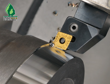 - 刃口信賴性高的長(zhǎng)壽命車削用PVD材質(zhì)。 令小零件的精